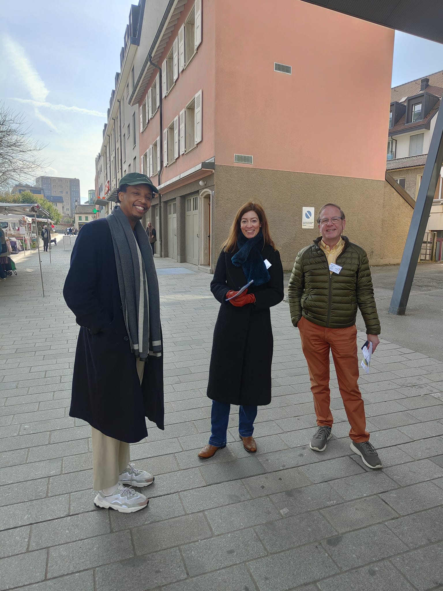 Distribution de flyers de notre liste N°2 et mes cartes postale pour l’élection à la Municipalité aux abords de la gare de La Tour-de-Peilz. Merci à Jean-Pierre, Michael et Jean-Claude
